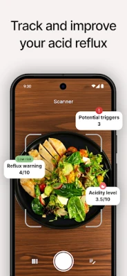 NoBurn vam omogućava da bez napora analizirate hranu: jednostavno skenirajte barkod, uslikajte obrok ili unesite naziv namirnice. U sekundi dobijate ključne informacije o kiselosti, potencijalnim okidačima, kalorijama i nutritivnim vrednostima. Naš pametni AI asistent za refluks nudi personalizovane sugestije, recepte prilagođene vašem stanju i ideje za obroke, olakšavajući vam planiranje ishrane i držanje dijete za refluks. Više nećete morati da se pitate da li će određena hrana izazvati neprijatnosti.