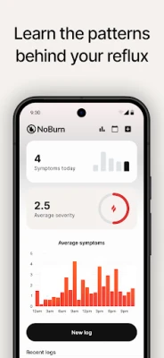Pored hrane, NoBurn vam omogućava da precizno pratite simptome poput gorušice, nadutosti i mučnine, kao i faktore poput sna i nivoa stresa. Detaljni grafikoni, analitika i izveštaji pomažu vam da prepoznate obrasce, izbegnete okidače i vizualizujete svoj napredak tokom vremena. Povežite se sa podržavajućom zajednicom unutar aplikacije, gde možete deliti savete i iskustva, pronalazeći snagu i motivaciju na vašem putu oporavka. Takođe možete beležiti lekove i stanja kao što su GERB, LPR, IBS ili intolerancije na hranu, te istraživati bazu recepata pogodnih za refluks. Za sveobuhvatan pristup, dostupni su i strukturirani planovi oporavka.