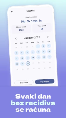 U srži aplikacije Freedom leži moćan sistem vizuelnog napretka i podrške. Jasan tajmer sa preciznim brojačem dana bez neželjene navike daje vam trenutni uvid u vašu snagu i istrajnost, služeći kao vaša lična vremenska linija oporavka ili fokusiranja. Svaka prekretnica je razlog za slavlje, podržana preglednom statistikom koja ilustruje vaš put. Pratite nizove, označavajte ključne datume u kalendaru i posmatrajte kako se vaši napori pretvaraju u dugoročne pozitivne promene. Uz zgodan vidžet, podsetnik na vašu posvećenost je uvek na dohvat ruke, podstičući vas da ostanete motivisani.