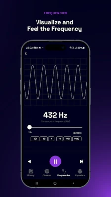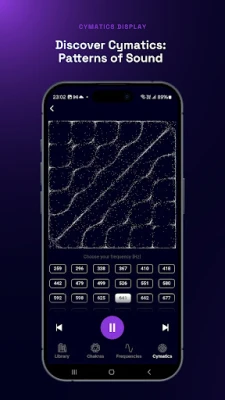 Uronite u bogatu riznicu isceljujućih frekvencija, istražujući vibracije usklađene sa sedam energetskih centara Čakri, ili generišite sopstvene, precizne tonove u rasponu do 22 kHz. Posebno dizajniran Zlatni presek režim nudi jedinstveno zvučno iskustvo, gde se frekvencije prirodno razvijaju prateći proporciju φ (1.618…), stvarajući neprekinute, harmonične sekvence koje podstiču smirenost, manifestaciju i optimalan protok energije. Vaše putovanje obogaćuju i vizuelizacije, od dinamičkih talasnih oblika u realnom vremenu do fascinantnih Cymatics i Chladni obrazaca, dok sve pokreće izvorni audio mehanizam za besprekornu i preciznu reprodukciju. Kreirajte vlastite korak-po-korak frekventne sesije i čuvajte omiljene kombinacije u personalizovanim listama.