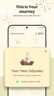 Ostanite motivisani uz preko 50 jedinstvenih dostignuća, kreiranih da vas nagrade za svaki korak – od prvog dana do prve godine slobode. Aplikacija vam takođe pruža uvid u pozitivne promene koje se dešavaju u vašem telu i umu, objašnjavajući zdravstvene benefite i mapirajući vremensku liniju uobičajenih simptoma apstinencije kako biste znali šta vas čeka. Sekcija "Vodič za odvikavanje" nudi savete i strategije kroz tri ključne faze, pomažući vam da razumete proces i pristupite mu sa samopouzdanjem. A u trenucima krize, dugme za hitnu pomoć pruža trenutni podsetnik na vaše prioritete i razlog zašto ste krenuli ovim putem.