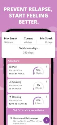 Quitvana vam pomaže da se oporavite od zavisnosti. Pratite samopovređivanje, ostanite trezni, sprečite recidiv i prestanite sa pušenjem, drogama, vejpingom, alkoholom, fapom i porno. Formirajte zdrave navike za život bez zavisnosti.