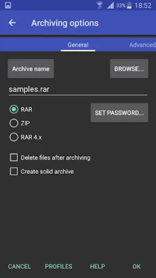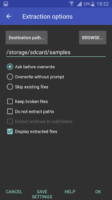 Unos i izlaz iz arhiva nikada nije bio sveobuhvatniji. RAR nudi potpunu podršku za ZIP i ZIPX datoteke sa BZIP2, LZMA, PPMd i XZ kompresijom, uključujući i ZIP-ove zaštićene lozinkom. Raspakivanje RAR arhiva je omogućeno za sve verzije, uključujući najnoviji RAR5 format, kao i za arhive zaštićene lozinkom i višemultipart datoteke. Osim toga, RAR je i robustan menadžer datoteka koji vam omogućava kopiranje, brisanje, premeštanje i preimenovanje datoteka i foldera, kreiranje novih direktorijuma, pa čak i praktično instaliranje aplikacija iz APK paketa.